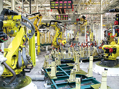 可實現(xiàn)6種車型切換柔性生產(chǎn)線;運用開放式柔性總拼、機器人柔性總拼核心技術(shù),通過技術(shù)改造,可將生產(chǎn)節(jié)拍提高至65JPH,自動化率高達95%以上。